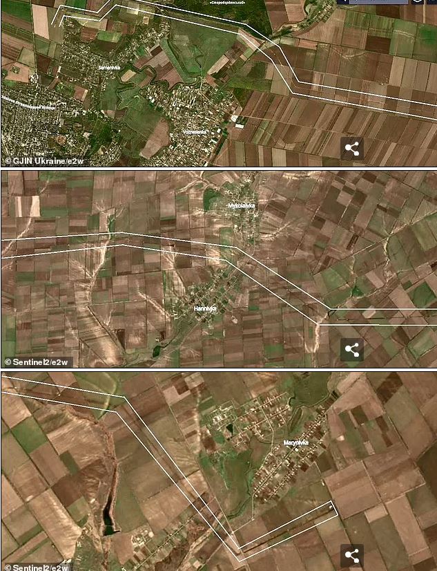 Tranšėją matoma iš palydovo „Sentinel-2”, ji rodo gynybines linijas, statomas aneksuotame Kryme – kai kurios jų yra populiariuose atostogų aikštelės paplūdimiuose.