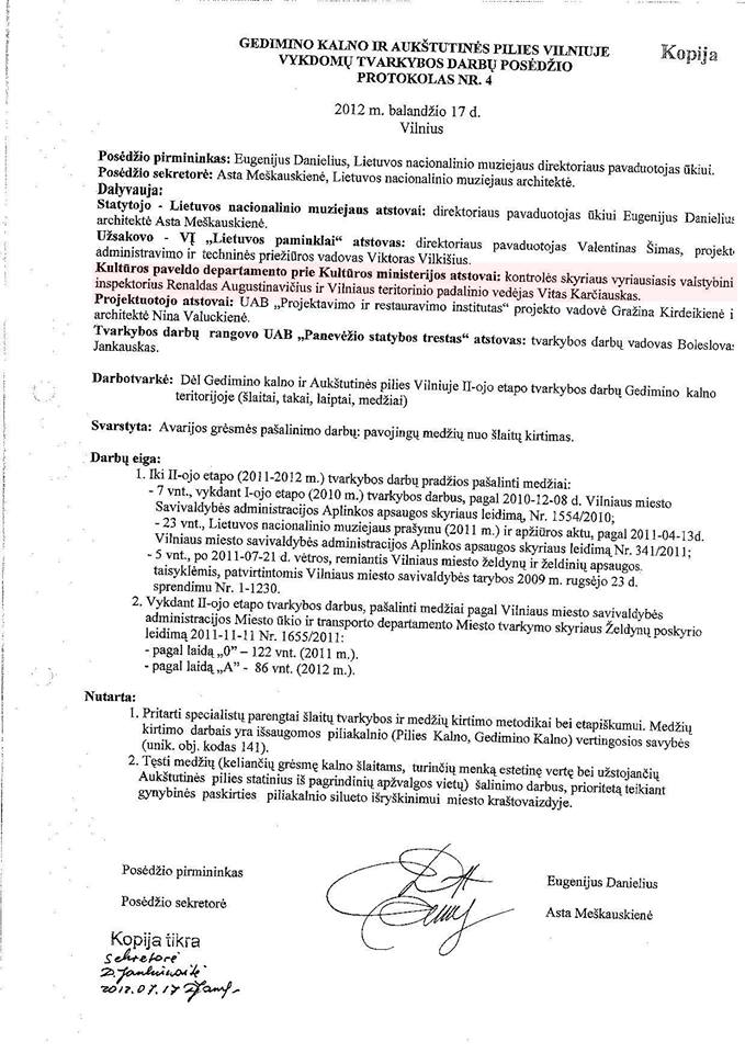 Visus sprendimus dėl Gedimino kalno „išgelbėjimo”, po kurio jis ėmė griūti, ir dabartinio „gelbėjimo po išgelbėjimo” priėmė priėmė Birutės Kulnytės vadovaujamas Nacionalinis muziejus. Ponios direktorės pezalais apie vibracijas ir medžių žalą niekas jau nebetiki.