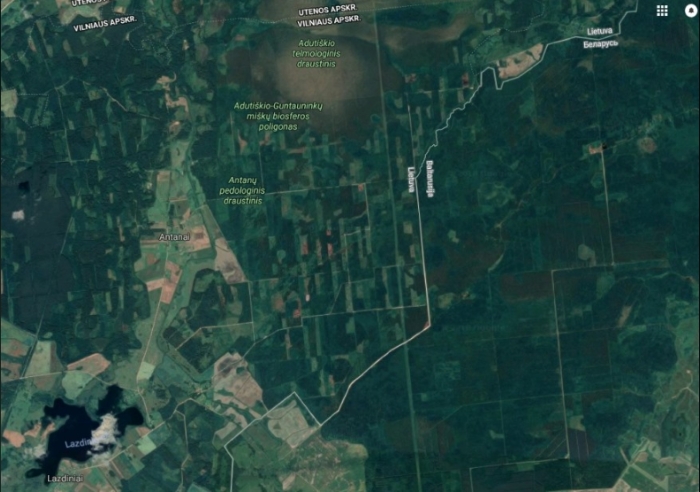 Skubėti reikia, nes gali greit nebelikti ką kirsti. Įsijunkit Google žemėlapius ir pasigėrėkit. Šioje nuotraukėlėje Lietuvos ir baisiosios tiranozaurų Baltarusijos siena. Mūsų pusėje pažanga – miškas kaip šachmatų lenta, šviesūs lopinėliai – tai kirtimai. Sąžiningai parašyta, kad tai draustiniai ir saugomos teritorijos.