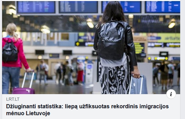 Ir visuomeninis manipuliuotojas pateikia džiaugsmingą žinią, kurios visas užtaisas pavadinime: „Džiuginanti statistika: liepą užfiksuotas rekordinis imigracijos mėnuo Lietuvoje”. Į šalį atvyksta daugiau, negu išvyksta, mūsų daugėja, valio, draugai!