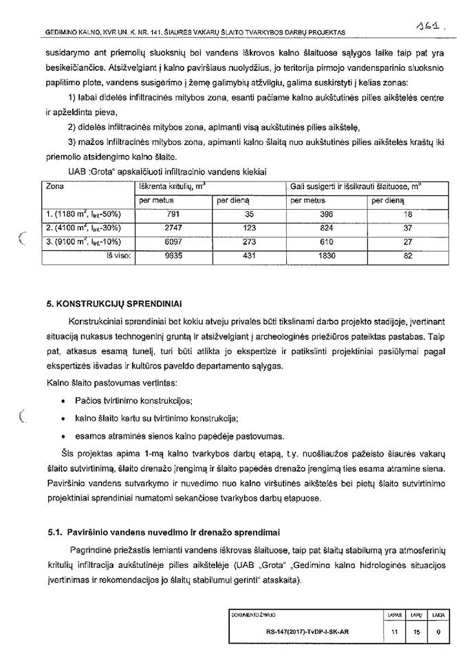 Šiame projekte aiškiai nurodyti tyrimais pagrįsti duomenys: „Pagrindinė priežastis, lemianti vandens iškrovas šlaituose, taip pat šlaitų stabilumą yra atmosferinių kritulių infiltracija aukštutinėje pilies aikštelėje.”