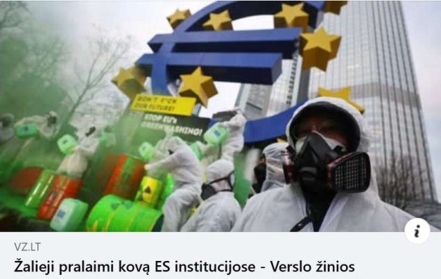 Puiki žinia. Turbūt už ją pirmiausia turime padėkoti įtakingiausios ES šalies – Vokietijos pramonės lobistams. Skaičiau pranešimus apie, dėl žaliojo kurso bankrutuojančias svarbias Vokietijos pramonės įmones, jų iškėlimą į kitas šalis ir svarsčiau kiek ilgai truks ši Vokietijos ir ES pramonės savižudybė.