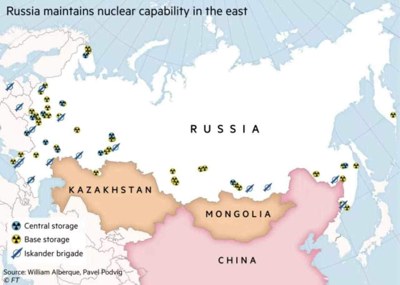 Atkreipkime dėmesį į žemėlapį, kur parodytos Rusijos branduolinio ginklo dislokavimo vietos. Labai nemaža jų dalis yra ir toliau ties Rusijos-Kinijos siena.