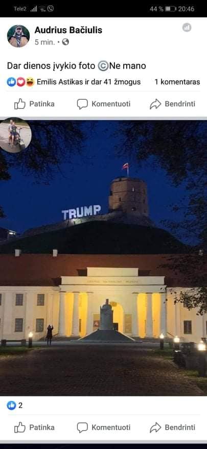 DiskusijosPasaulisPolitika Andrius Švarplys. Lietuva siunčia linkėjimus Donaldui Trumpui 2020-10-25 Dalintis TelegramFacebookTwitter Trumpas – mano prezidentas! God Bless Amerika! Tada ir Lietuvai bus geriau. P.S. chebra, kurie iškėlėt, jums medalis. Didžiulis respectas. Jei reikės paramos, jei Šimašoidai iš ”Tolerancijos Laisvės”, pradės persekioti, rašykit sąskaitą – paremsim. Daugiau Ankstesnis straipsnisAudrius Bačiulis. Galingiausias Lietuvos žmogus, vertęs prezidentus, nuteistas už prekybą…Kitas straipsnisVytautas Sinica. Popiežius prieš Bažnyčią Reklama Kviečiame paremti Panašios publikacijos Jonas Vaiškūnas. Lenkijos prezidento apsilankymas Vilniuje: tarp saugumo ir istorinių patirčių, kurios verčia būti budriems Edvardas Čiuldė. Kur būtų galima išsiųsti Žalimą, kad būtų apsaugota Lietuva nuo dergimo? Diskusijos Prof. Jonas Grigas. Ant bedugnės krašto Diskusijos Valdas Sutkus. Kaip prancūzų marksistui laisvoje Lietuvoje paminklą pastatė Diskusijos Vidas Rachlevičius. Naujojo pasaulio kontūrai (2). Galia, teisė ir mūsų valstybės likimas Įžvalgos Almantas Stankūnas. LGBT susirūpino Gyvenimo įgūdžių ugdymo programa mokyklose ir teismų sprendimais Diskusijos Susiję straipsniai Diskusijos VRK nevykdo teismo sprendimo! 2026 m. sausio 14 d. Lietuvos vyriausiasis administracinis teismas priėmė istorinį sprendimą – įpareigojo VRK sukurti prieigą Piliečių... Įžvalgos Prof. dr. Liudvika Meškauskaitė. Apie LRT krizę: kas, kodėl ir kaip (II dalis) Visuomeninio transliuotojo teisinio statuso ypatumai LRT krizės kontekste LRT nėra tiesiogiai paminėta Konstitucijoje, tačiau visuomeninio transliuotojo samprata yra glaudžiai... Diskusijos D. Trampas: JAV lėktuvnešiui įplaukus į Artimųjų Rytų vandenis, Iranas „daug kartų“ skambino, siekdamas sudaryti susitarimą JAV prezidentas Donaldas Trumpas pareiškė, kad Iranas, atrodo, siekia derėtis su Jungtinėmis Valstijomis, didėjant JAV karinių pajėgų telkimui... Diskusijos Edvardas Čiuldė. Galiojimo laikas baigėsi, bet pašvinkusi mėsa tebeguli vitrinose Dar suspėjau išgirsti, kad išlipantis iš troleibuso žmogelis mestelėjo savo bendrui, su kuriuo diskutavo kelionės metu apie vadinamųjų...