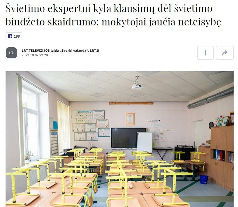 „Švietimo ekspertas, žurnalo „Reitingai“ vyriausias redaktorius Gintaras Sarafinas teigia, kad ne visai aišku, kaip iš kelių milijardų švietimo biudžeto panaudojama maždaug pusė milijardo.