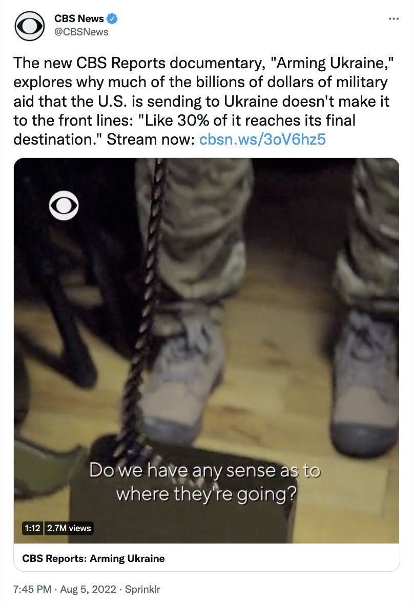 JAV CBS televizija parodė dokumentinį filmą „Arming Ukraina“.