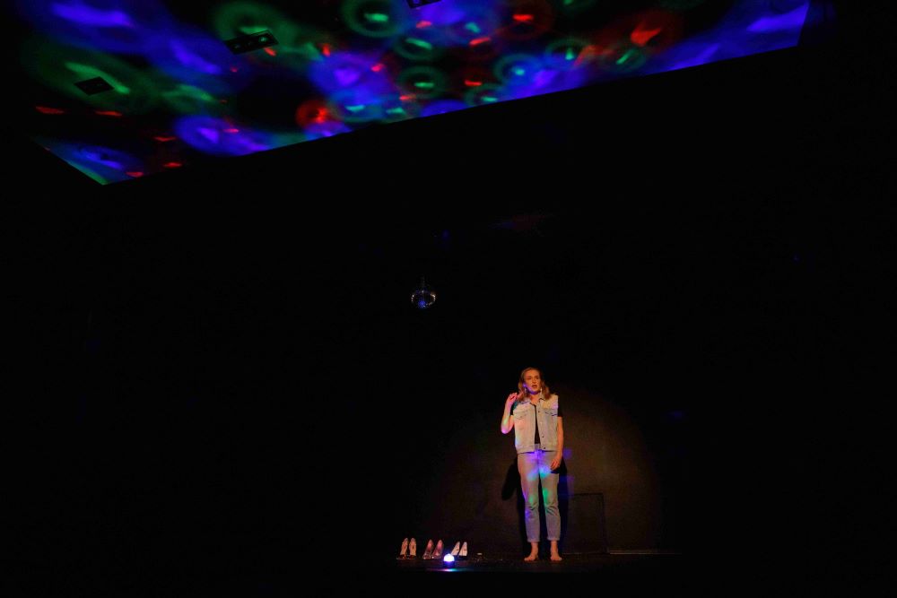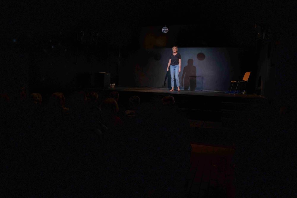 Spektaklio „Vuojaž, vuojaž“ akimirkos. Spektaklio autorė, režisierė ir atlikėja Aušra Pukelytė;