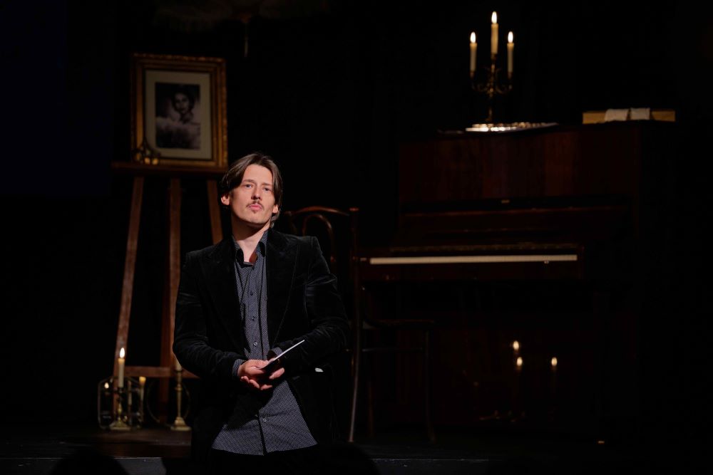 Tautų sąjungos Ženevoje būstinė, Mentono kurortas pietų Prancūzijoje, kur Savickis nusipirko žemės ir pasistatė vasarnamį… Planų daug, darbų daug, Lietuvos okupacija smarkiai paveikė visą Jurgio Savickio gyvenimą. Jis negalėjo grįžti namo, gyveno kaip pabėgėlis. Spektaklyje visas dėmesys sutelkiamas į istorines peripetijas, kurios tiesiogiai veikia rašytoją, diplomatą. Aktoriui svarbu nepaversti pasirinktos asmenybės istorine marionete, bet apdovanoti ją net ir savo asmeninėmis savybėmis. Akivaizdu, kad šiuos psichologinius „vaikščiojimus“ taikliai stebėjo ir „įteisino“ režisierė. Čia nenaudojamos įprastos klišės (pvz., jeigu žemaitis, tai būtinai turi žemaičiuoti, jeigu karas, tai būtinai kakta suraukta, jeigu Hitleris, tai kaip iš filmų). Vozbutui pavyko viską perteikti balsu ir plastika.