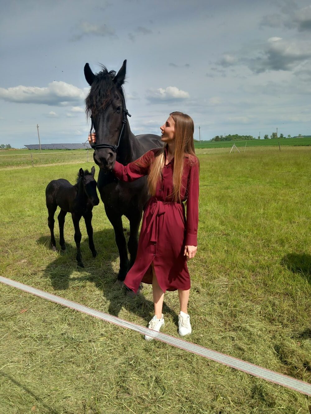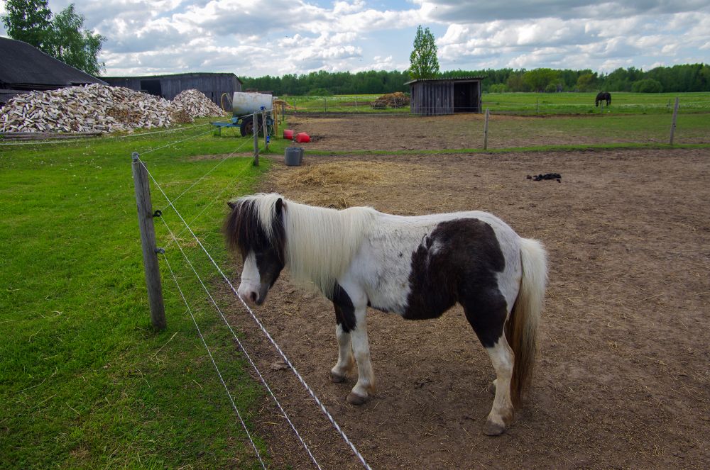 Iš tolo pasigrožime ganyklos tolumoje besiganančiais kitais žirgais, tarp jų – ir juoduoju gražuoliu – pirmuoju ponios Apolonijos žirgu. Jam jau 30 metų – garbus amžius, bet senjoras oriai vaikštinėja po pievas ir vadovauja kumelaitėms. Šios sodybos šeimininkai suteikia auginamiems gyvuliams didelę laisvę; pasak jų, kuo daugiau natūralumo, tuo žirgai sveikesni. Gyvūnai daug laiko praleidžia gryname ore, ir žiemą taip pat, taigi yra gerai užsigrūdinę.