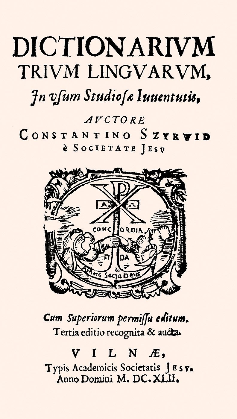 Apie 1620-uosius Vilniaus universiteto spaustuvėje išleistas, vėliau pertvarkytas ir 1631-aisiais perleistas, netrukus – 1642 ir 1677 m. vėl pakartotas, pagaliau dar ir 1713-aisiais išspausdintas Sirvydo lietuvių kalbos žodynas su lotyniškų ir lenkiškų žodžių atitikmenimis normino ir tobulino lietuvių kalbą – darė ją tinkamą vartoti visose visuomenės gyvenimo srityse. Lietuvių kalba čia iškyla ne tik kaip valstiečių žemdirbių, bet ir kaip intelektualinio bei politinio gyvenimo kalba, kuria galima ir dera svarstyti filosofijos, teologijos, politikos klausimus.