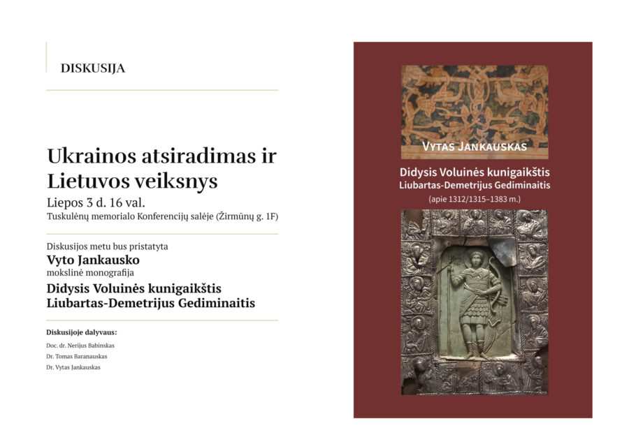 Renginio metu taip pat bus pristatyta Vyto Jankausko mokslinė monografija „Didysis Voluinės kunigaikštis Liubartas-Demetrijus Gediminaitis“. Monografijoje apžvelgti Lietuvos ir Rusios santykiai nuo jų ištakų bei jauniausio Gedimino sūnaus Liubarto-Demetrijaus Gediminaičio žemių dabartinės Ukrainos teritorijoje valdymas.