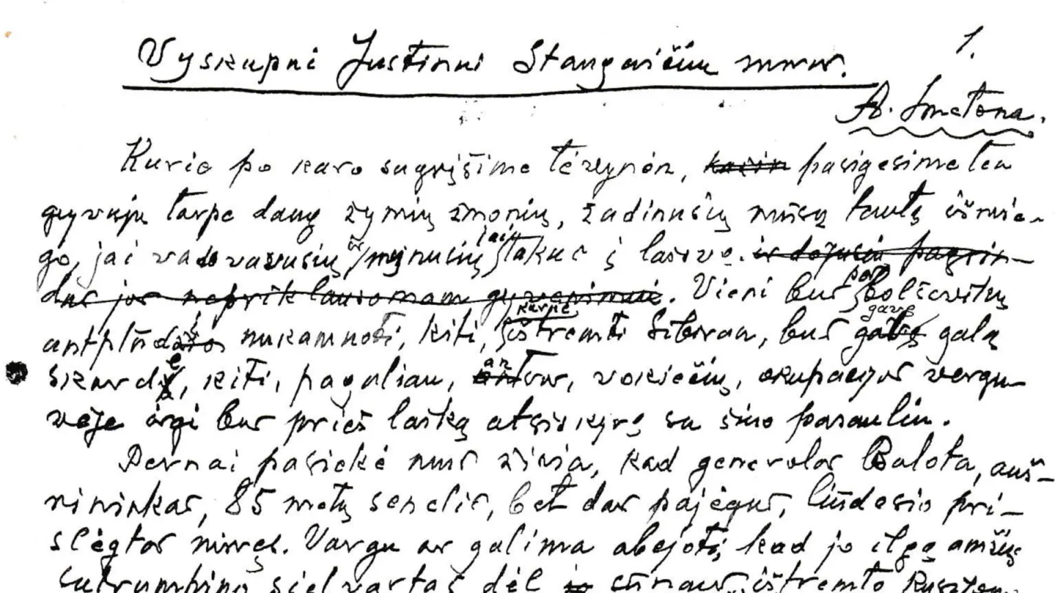 Neseniai Mažeikių muziejuje saugomo kraštiečio žurnalisto ir redaktoriaus Vytauto Gedgaudo (1912–1999) archyvą papildė naujas eksponatas – Prezidento Antano Smetonos ranka rašytas straipsnis apie vyskupą Justiną Staugaitį.