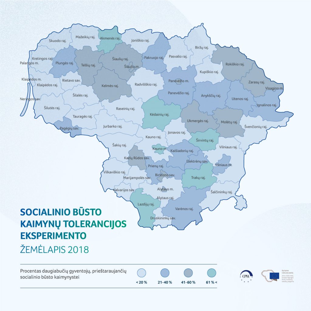 Eksperimento metu nesutikimą dėl socialinio būsto kaimynystės išreiškė 29 proc. pranešimus gavusių gyventojų, o prieštaraujančių skaičius savivaldybėse buvo labai skirtingas. Pavyzdžiui, Kaune, Kėdainiuose ir Širvintose socialinio būsto kaimynystės nepanoro daugiau nei 80 proc., o Druskininkuose, Raseiniuose ir Kretingoje – mažiau nei 6 proc. gyventojų.