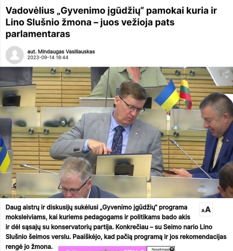 Iš vienos pusės – liūdna, kai žiniasklaida koncentruojasi ne į turinį, bet į iš konteksto išrauktą vieną frazę. Iš kitos pusės – džiaugiuosi, kad mano pasisakymas pabudino žiniasklaidą, politikus ir Prezidentą, privertė aiškintis Švietimo ministerijos atstovus, Gyvenimo ugdymo programos kūrėjus ir padėjo demaskuoti tuos, kurie iš šios programos pelnosi.