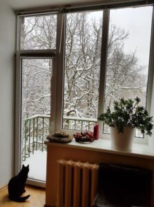 Šiandien grožiuosi sniegu laukuose, žemais debesimis, saule, besimainančia su ūkanų tvanais, ir tykiai pietaujančiomis stirnomis neaprėpiamoje tyloje.