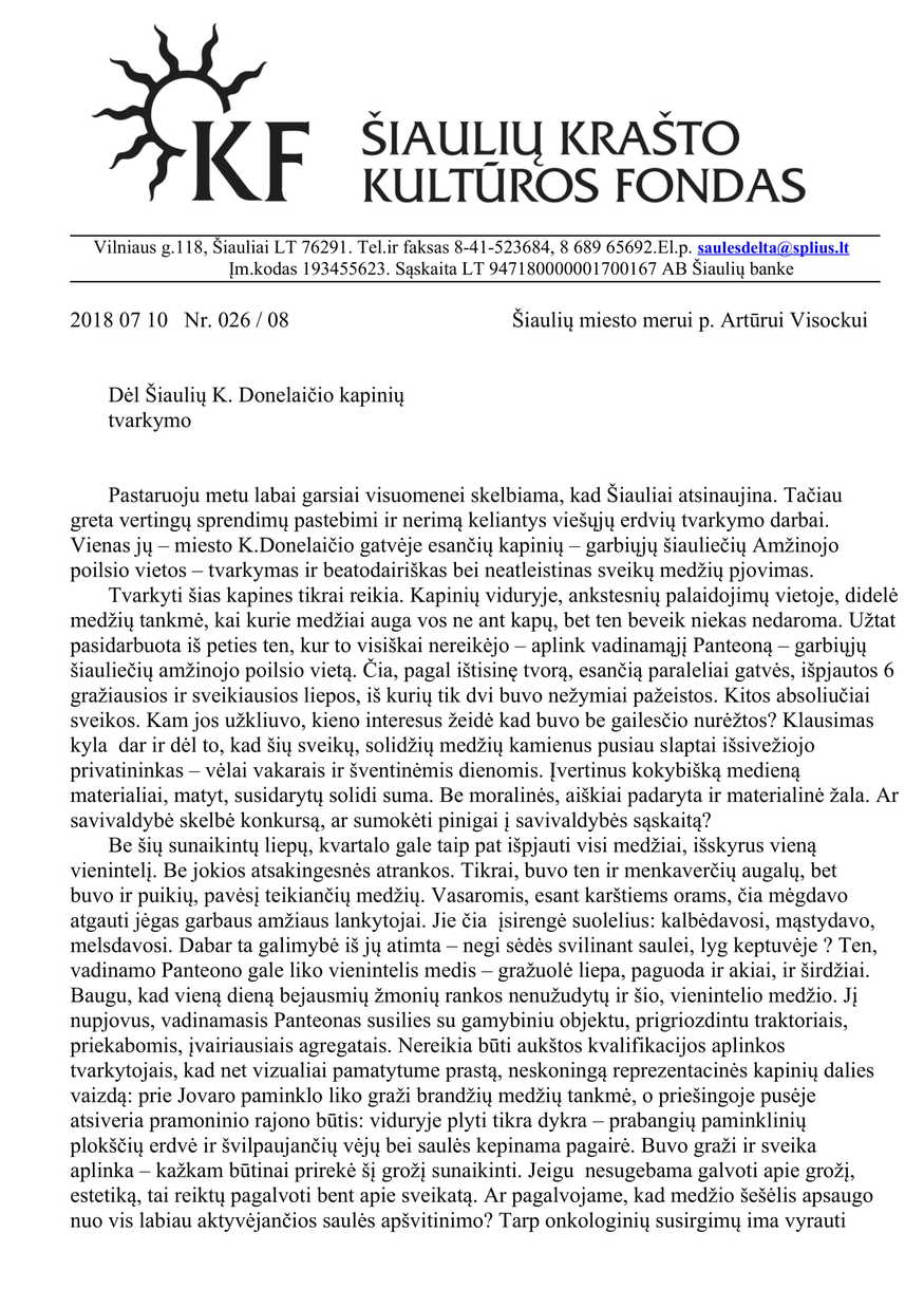 Iš pradžių galvojau, kad tai noras įsiamžinti, atkreipti į save dėmesį įprasminti savo veiklą kokiais nors fundamentaliais darbais. Bet vietoje atsparių, Lietuvoje augusių, sveikų medžių sodinami visokie mutantai – siauralajai rausvažiedžiai ar raudonžiedžiai kaštonai, liepos, miestų parkuose, kaip viščiukai inkubatoriuose, rikiuojasi staiga labai madingais tapę rododendrai…