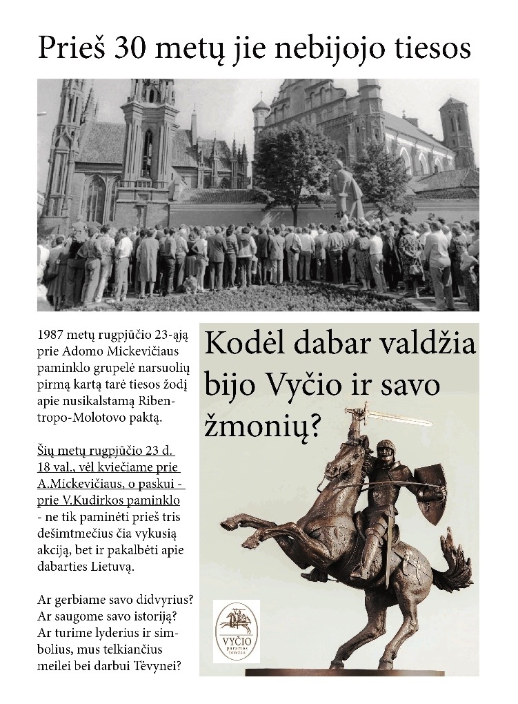 Rugpjūčio 23 d. vyks mitingo prie A. Mickevičiaus paminklo trisdešimtmečio