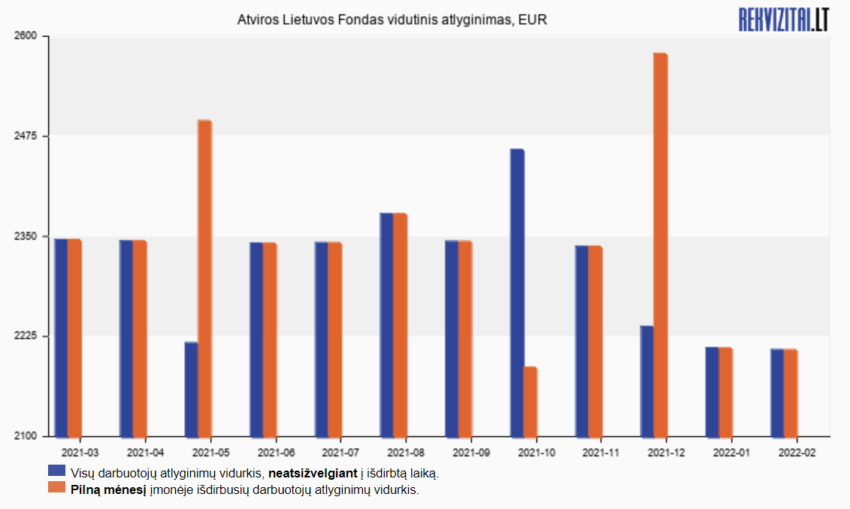Rekvizitai.lt galima rasti šiek tiek viešai prieinamos informacijos apie Atviros Lietuvos fondo darbuotojų skaičių ir atlyginimus. Šiuo metu ALF dirba aštuoni darbuotojai, vidutinis atlyginimas „ant popieriaus“ 2021 m. vasarį buvo apie 2207,37 eurų.