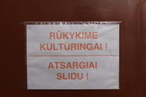 Beje, ant sienos buvo pakabintas užrašas „RŪKYKIME KULTŪRINGAI !“, tarsi kviečiantis besilaukiančias ir su naujagimiais atėjusias mamas prisijungti. Iš pakabinto užrašo galima suprasti, kad šios darbuotojos ne šiaip išsmuko sutraukti po cigaretę, bet moterų (gimdyvių) ir naujagimių priimamojo prieigos yra su ligoninės administracija suderinta rūkymo vieta!
