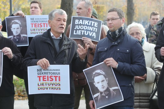 Vienas iš protesto organizatorių, Lietuvos laisvės kovotojų sąjungos garbės pirmininkas Jonas Burokas sakė pastebintis vis daugiau šmeižto kampanijų prieš laisvės kovotojus: „Ypač keista, kad prie to prisideda užsienio reikalų ministras. Manau, jis tai daro sąmoningai. Šiandien mūsų susirinko tik saujelė, sunku kovoti prieš valdžios postuose įsitvirtinusius. Bet jie neturi teisės pulti laisvės kovotojų, paaukojusių gyvybes už savo Tėvynę.“