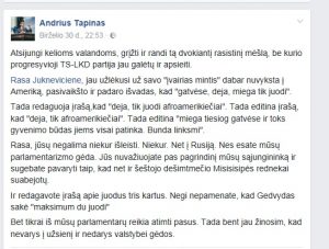 Teisingasis ponas Tapinas piktinasi „rasiste“ Rasa Juknevičiene.