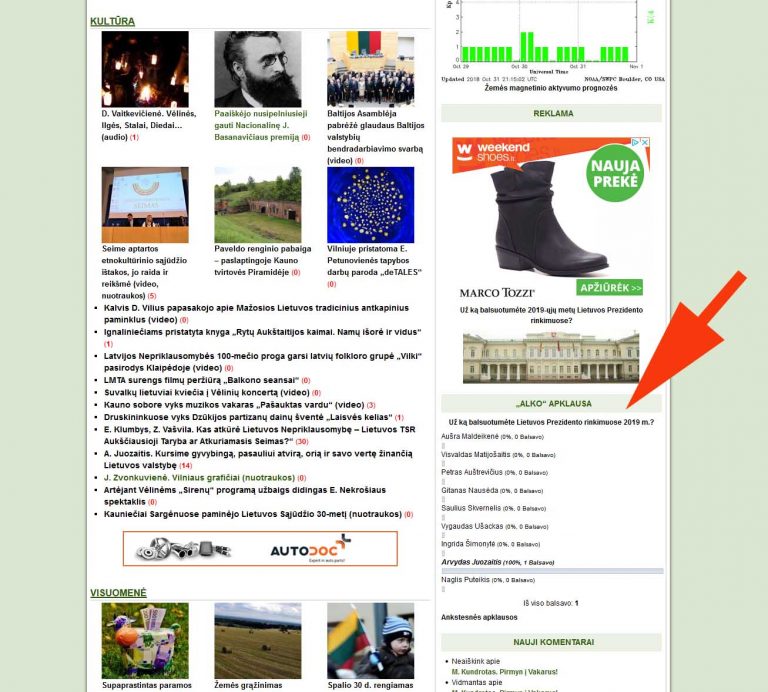 Nuo šių metų birželio 11 d. paskelbtoje Alkas.lt apklausoje „Už ką balsuotumėte 2019-ųjų metų Lietuvos Prezidento rinkimuose?“ vienvaldžiu nugalėtoju tapo filosofas, Sąjūdžio pradinikas Arvydas Juozaitis surinkęs 45% balsų, tai yra 667 balsus iš 1 488 balsavusiųjų šioje apklausoje. Antroje vietoje liko Žygimantas Pavilionis (20%, 292 Balsai), trečioje Vygaudas Ušackas (10%, 144 Balsai).