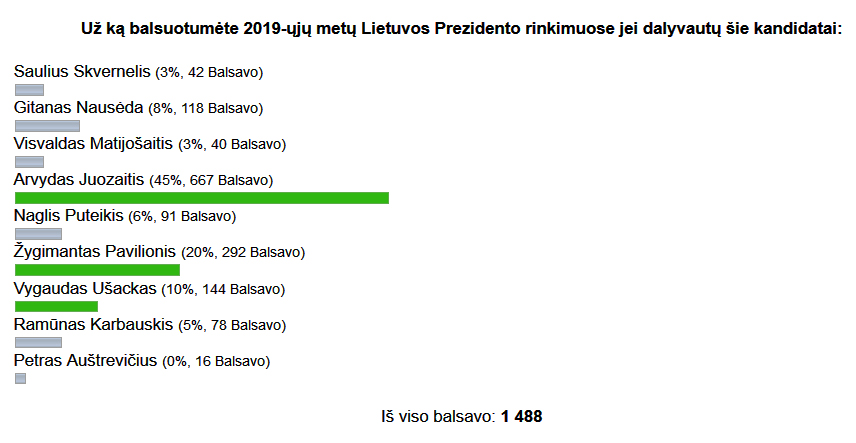 - Arvydas Juozaitis (45%, 666 Balsai)