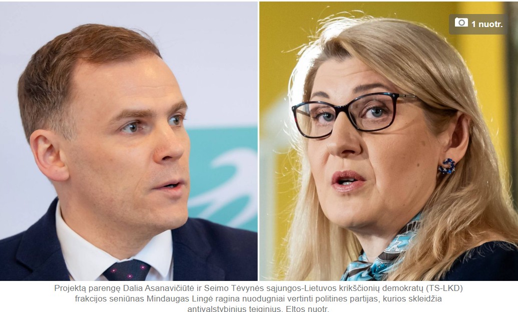 Seimo konservatorių frakcijos seniūnas Mindaugas Lingė ir frakcijos narė Dalia Asanavičiūtė užregistravo Politinių organizacijų įstatymo pataisą, kuri, jei būtų priimta, leistų lengviau susidoroti su politiniais oponentais. Ir netgi likviduoti jų partijas.