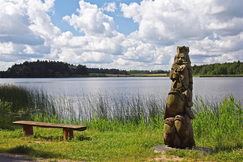 Mūsų žvilgsniai tąsyk krypo į spalvingą informacinio centro stendą, pasakojantį apie gamtos objektus, kurių Veprių apylinkėse esama išties išskirtinių. Vien ko vertas miestelio centre tyvuliuojantis, padavimais garsėjantis Veprių ežeras.