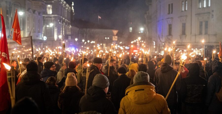 Vasario 16 d. švenčiant Lietuvos valstybės atkūrimo 107-ąsias metines, Vilniuje įvyko tradicinės deglų eitynės, subūrusios virš tūkstančio dalyvių.