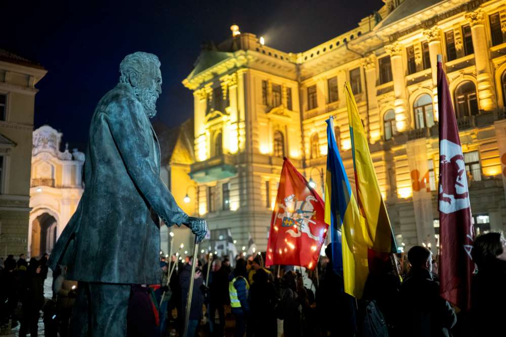 EISENA. Minint valstybės atkūrimo 107-ąsias metines, sekmadienį vyko kasmetinės tautinės eitynės Vilniuje. Tūkstantis eitynių dalyvių vakare rinkosi prie Vasario 16-osios Akto signataro Jono Basanavičiaus paminklo ir žygiavo iki Lukiškių aikštės.