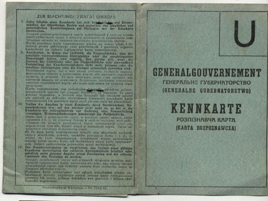 Žydams ir čigonams buvo išduodamos geltonos Kennkarte, rusams, ukrainiečiams, baltarusiams ir kitiems SSRS gyventojams – mėlynos.