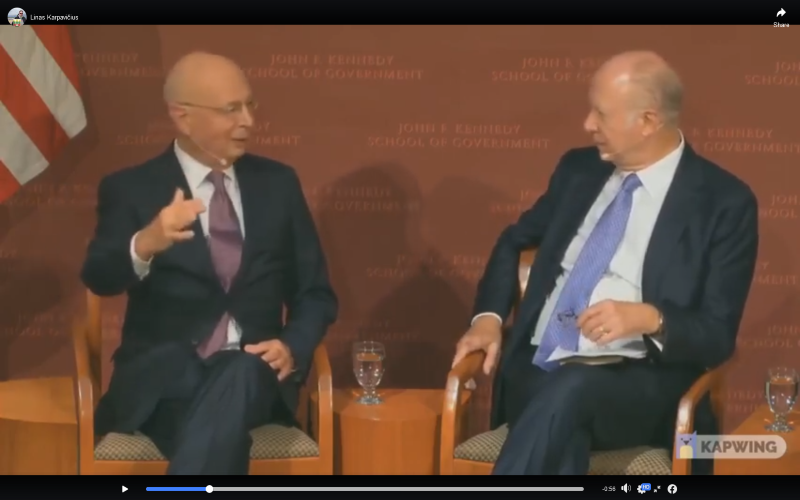 Klausas Švabas: „Aš turiu pasakyti, kada aš paminiu tokius vardus kaip mis Merkel, VLADIMIRAS PUTINAS, ir taip toliau. Visi jie buvo Pasaulio ekonomikos forumo (WEF) globalaus pasaulio jaunųjų lyderių tarpe.