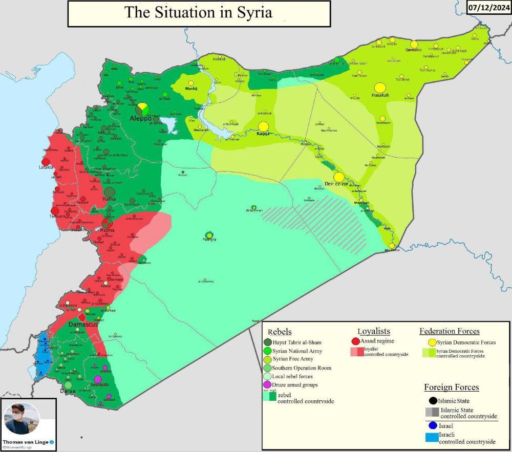 Bet to fronto griuvimui neturėjo pakakti. Galimai yra susitarimai pabaigti su Asadu. Kodėl Rusija sutiko juo atsikratyti? Spėju, kad gavo gerų bonusų greitai prasidėsiančiose derybose dėl Ukrainos rytinių teritorijų.