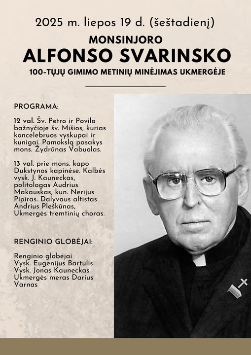 Kviečiame visus, kam brangi Lietuvos laisvės istorija, atvykti į Ukmergę ir pagerbti Monsinjoro Alfonso Svarinsko atminimą.