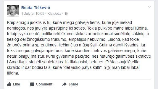 Aš jau vieną kartą rašiau apie tai kodėl nekenčiu Beatos Tškevič ir nuo pat pirmų mano bloginimo dienų mane sekantys fanai tai atsimena, bet šiandien ne apie tai. Aš nebejaučiu jai neapykantos, matyt ir pačiam reikėjo dar suaugt ir pajusti šiek tiek ramybės. Man tik įdomu, kas su ja yra negerai? Ar gi žmonės nejaučia ribų? Nors gal ir pats perdedu ją vertindamas.