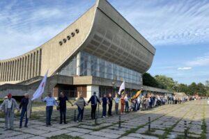 Rugpjūčio 23 dieną apie 200 protestuotojų Vilniuje susirinko į akciją, kurios metu pasmerkė Vyriausybės sprendimą atiduoti Koncertų ir sporto rūmus jų vietoje kadaise buvusių žydų kapinių įamžinimui. Akciją organizavusio Nacionalinio susivienijimo teigimu, Sporto rūmai yra Sąjūdžio lopšys ir turi būti paversti Sąjūdžio muziejumi.