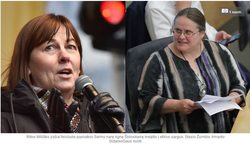 Etikos sargams pateiktame skunde A.Širinskienė nurodo, kad per šių metų vasario-balandžio mėnesius R.Miliūtė paskelbė daugiau kaip 40 įrašų savo socialinio tinklo „Facebook” paskyroje, kuriuose kritikavo opozicijai priklausančius politikus, dažnai – nevengdama ironijos, neargumentuotu teiginių jų atžvilgiu, neslėpdama savo politinių preferencijų: „Pertą patį laikotarpį R.Miliūtės paskyroje nebuvo paskelbtas nei vienas įrašas, kuriame būtų bent kažkiek kritikuojami valdantieji.