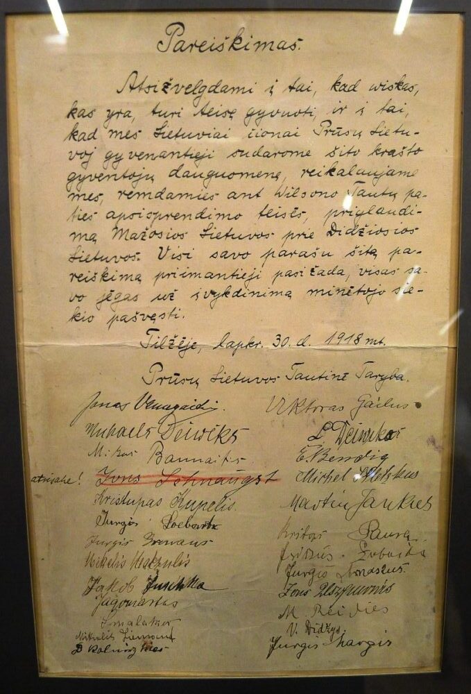Parodoje pirmą kartą pristatomas Mažosios Lietuvos tautinės tarybos deklaracija/pareiškimas – Tilžės Akto originalas.
