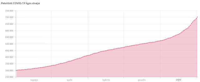 2021–09–13 7 dienų užregistruotų atvejų vidurkis buvo 807, tada augo (spalio 31 d. buvo 2994 atvejai), tada per pora savaičių sumažėjo ir išliko tolygus, o nuo metų pabaigos šoktelėjo į viršų (nuo 1322 21–12–25 iki 9539 22–01–31)