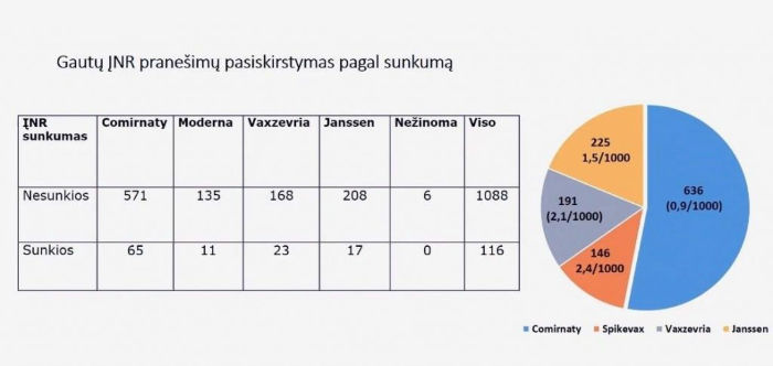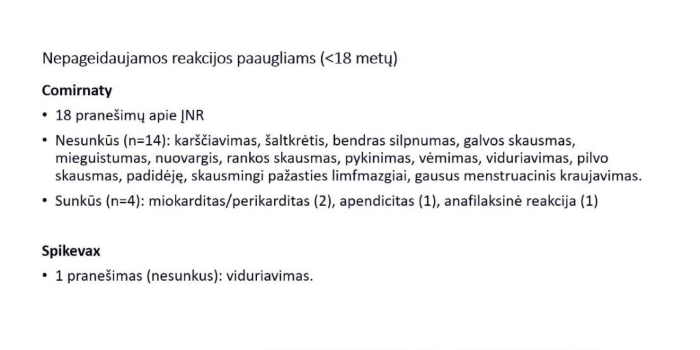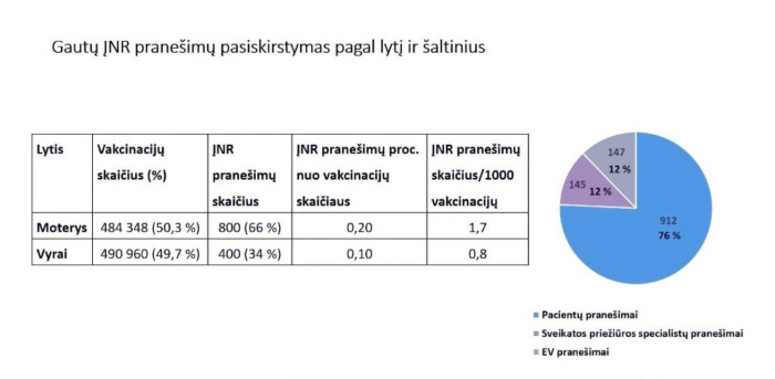 Skaidrėse: VVKT duomenys apie Lietuvoje užregistruotas vakcinų nepageidaujamas reakcijas.