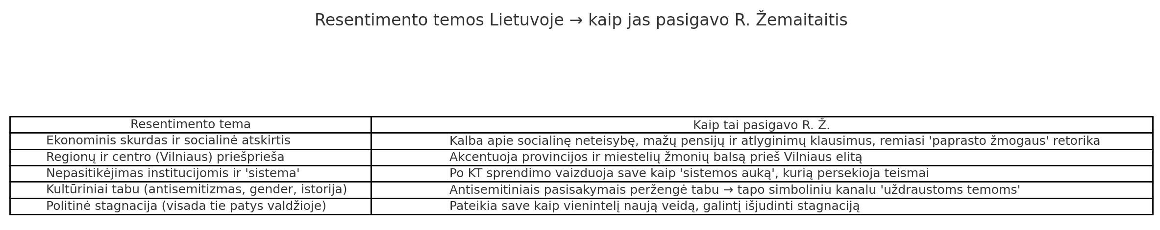 Lietuvos politikoje antisemitizmas yra vienas baisiausių ideologinių nusikaltimų. Bet koks tokio tipo pareiškimas reiškia automatinį pasmerkimą ir politinę ekskomuniką, o kartais – net socialinę mirtį. Didžiosios partijos šios temos neliečia. Tačiau šis tabu turi ir kitą pusę – tai lyg uždarytas garų puodas. Kai visuomenėje kyla nepasitenkinimas dėl Lietuvos žydų bendruomenės vadovų antilietuviškų pasisakymų arba taikomų dvejopų standartų, jis negali būti niekaip legaliai artikuliuotas „mainstream“ politikoje. Žemaitaitis, sąmoningai ar ne, peržengęs šį tabu, nukėlė puodo dangtį, tapo kanalu ne tik antisemitiniam sentimentui, bet ir platesniam nepasitenkinimui „elitu“ reikšti. Taip antisemitizmo korta jam kainavo politinį legitimumą kaip Seimo nariui, bet netikėtai suteikė protesto lyderio statusą ir naujas politines perspektyvas, kuo jis, kaip „auka ir kankinys“ sumaniai pasinaudojo, nustumdamas visus kitus konkurentus šiame lauke. Tokiu būdu jis tapo savotišku susikaupusio visuomenės nepasitenkinimo laidininku, per kurį galėjo išsiveržti neprivilegijuotųjų pyktis dėl daugelio problemų: