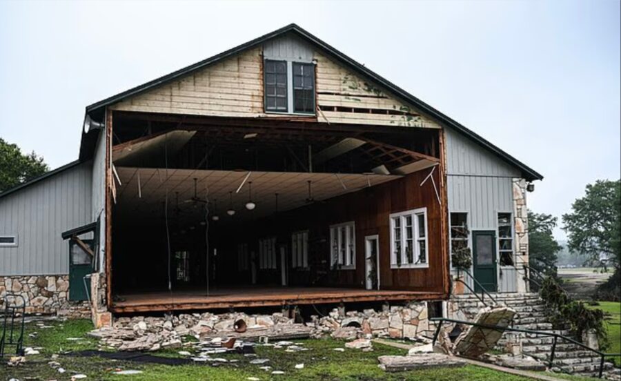 Paskelbtos nuotraukos rodo apgadintą pastatą „Camp Mystic“, kur žuvo mažiausiai devynios mergaitės, kai jį užliejo siautėjantys potvynio vandenys.