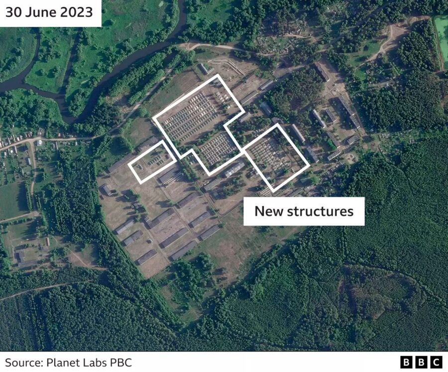 BBC paskelbė naujausias palydovines nuotraukas, kuriose užfiksuota vietovė prie Cel kaimo netoli Osipovičių, vietoje, kurioje anksčiau buvo įsikūręs karinis dalinys. Nuotraukose matyti, kad lauko stovykla, kurioje, kaip tikimasi, bus dislokuoti Vagnerio PMC samdiniai, jau baigta statyti. Stovykloje pastatyta apie 298 palapinės, apskaičiavo @Hajun_BY.