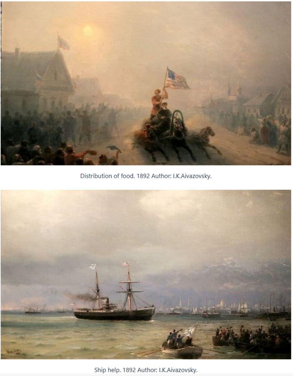 Pagalbos simboliu tapo 1892 m. vasarį iš Filadelfijos išplaukęs laivas „SS Indiana“, gabenęs daugiau nei 5 000 tonų maisto produktų, daugiausia miltų. Nuo pavasario pradžios iki pat vasaros vidurio iš Amerikos atplaukė penki garlaiviai su humanitarinėmis prekėmis, kurių bendras svoris siekė daugiau kaip 10 tūkst. tonų, o tai to meto kainomis kainavo apie milijoną dolerių. Tą laikotarpį primena garsaus Rusijos dailininko I. Aivazovskio paveikslai, viename iš kurių pavaizduotas šis laivas, o kitame – maisto prikrautos rogės Rusijoje, ant kurių plevėsuoja JAV vėliava. Ypač įspūdingas antrasis paveikslas. Jo centre – garsioji rusiška „troika“, prikrauta maisto produktų, o joje stovi valstietis ir rankose laiko plevėsuojančią Amerikos vėliavą. O kaimiečiai iš džiaugsmo mojuoja kepurėmis ir skarelėmis. I. Aivazovskis buvo vienas iš tų, kurie asmeniškai matė tų taip vadinamo „bado laivyno“ laivų sutikimą. Įdomu tai, kad šiuos Aivazovskio paveikslus buvo uždrausta rodyti Rusijoje. Imperatorių labai erzino dailininko drobėse perteikta žmonių nuotaika. Toks entuziazmas turėtų būti nukreiptas į jį, Rusijos valdovą, o ne į kažkokius užjūrio veikėjus. Dėl to Aivazovskis 1893 m. pradžioje Rusijos valdžiai nepatikusius paveikslus išvežė į Ameriką. Ten jis juos padovanojo Vašingtono Korkorano galerijai, kur vėliau jie daug metų buvo eksponuojami.