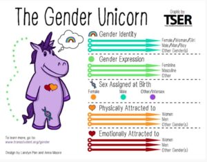 Mokyklose penktokai buvo verčiami skaityti propagandinę knygą „My Shadow is Pink“, o paskui patys, piešdami kreida piešinėlius, aiškinti jaunesniems vaikams apie „lyties takumą“. Knygoje pasakojama apie berniuką, kurio šešėlis yra rožinis (lyties tapatybės metafora), ir apie tėvo transformaciją iš skeptiko į palaikytoją, kai šis pats apsirengia sijoną. Dešimtmečiai vaikai buvo paversti dar jaunesnių vaikų „edukatoriais“. Buvo plačiai taikomos „lyties vienaragio“ (Gender Unicorn) schemos. Tai grafinis įrankis, skirtas įteigti vaikams, kad biologinė lytis, lytinė tapatybė ir lytinė išraiška yra visiškai nesusiję dalykai. Kai tai pateikiama penkiamečiams, tai nėra švietimas – tai vaiko natūralios raidos ardymas, siekiant suformuoti specifinį pasaulėvaizdį.