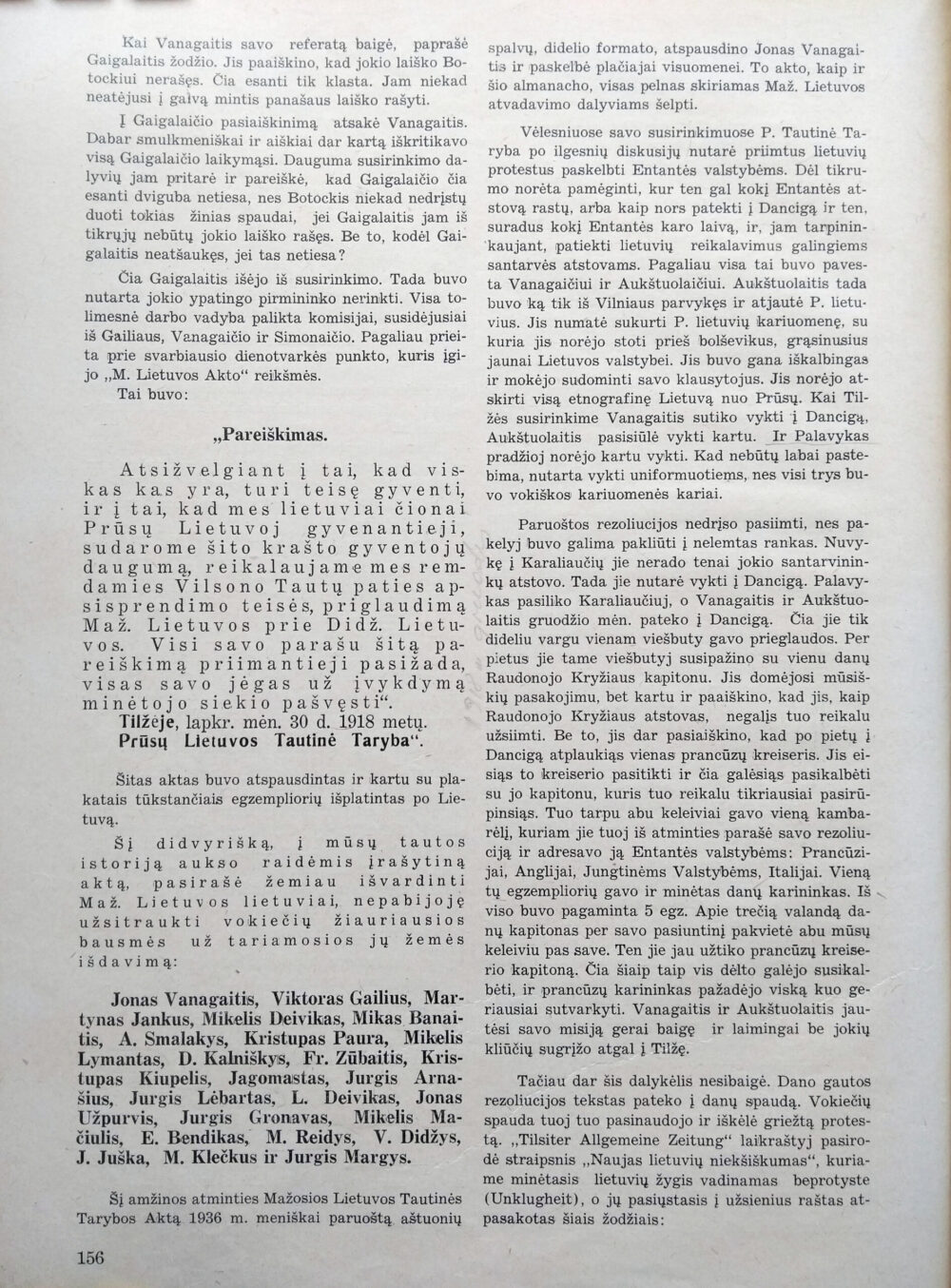 Seniausiame spausdintame dokumente, kurį pavyko aptikti minimas „pareiškimas“. Jono Vanagaičio (1869 – 1946) 1938 m. almanache „Kovos keliais“, psl. 156 spausdintas „Pareiškimo“ nuorašas.