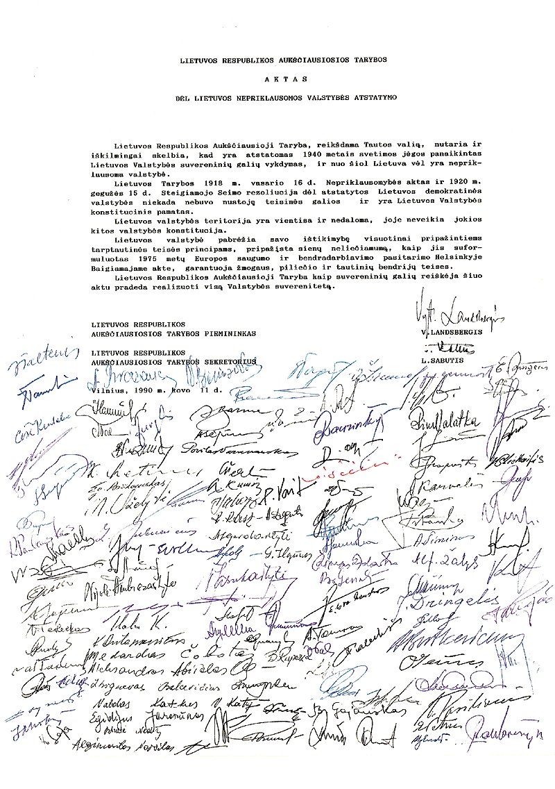 Jozefas Gebelsas, fašistinės Vokietijos propagandos ministras, yra pasakęs: daug kartų pakartotas melas tampa tiesa. Ir štai, daug kartų pakartotas „aktas“ galiausiai – 1990 m. kovo 11 d. tapo tiesa. Lietuvos Respublikos Aukščiausioji Taryba paskelbė Aktą dėl Lietuvos nepriklausomos valstybės atstatymo.