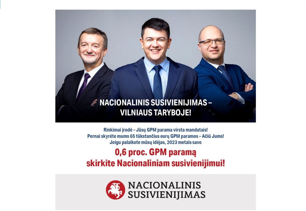 Prašome ir toliau mus remti ir esame iš anksto dėkingi į šį kvietimą atsiliepusiems. 0,6 proc. GPM paramos skyrimo instrukcija – šioje nuorodoje: https://susivienijimas.lt/skirkite-partijai-06-nuo-gpm/