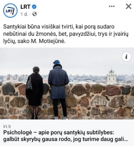 Bet nebūkime tamsuoliai, būtinai paskaitykime straipsnį: https://www.lrt.lt/…/psichologe-apie-poru-santykiu…